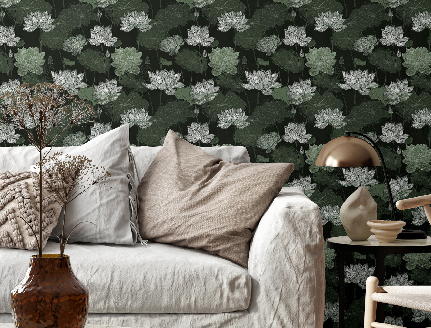 Online erbjuder de kunder självhäftande och handmålade varuprover för snabb leverans kombinerat med stilförslag. Dessutom ett mycket stort sortiment av tapeter och målarfärgskulörer för inomhusbruk – ja, över 50 internationella varumärken.