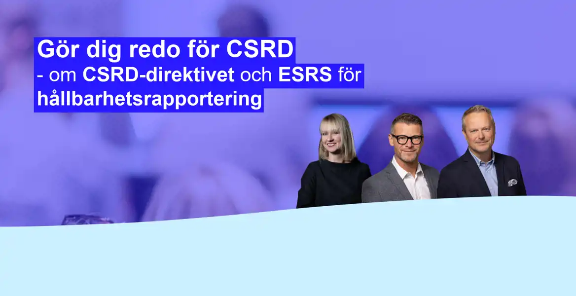Gör dig redo för CSRD är ett seminarium som är en introduktion till CSRD-direktivet och ESRS för hållbarhetsrapportering. Då efterfrågan har varit stor erbjuds seminariet nu under flera datum på olika orter.